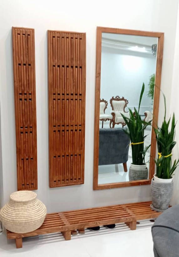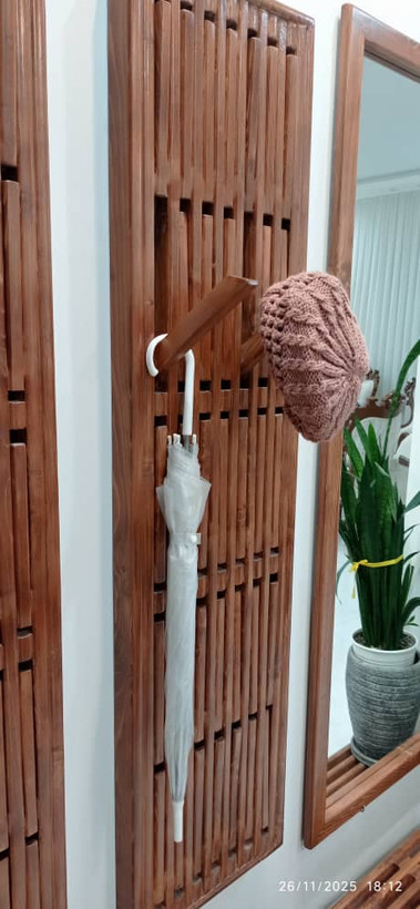 ست آینه و رختآویز چوبی، ترکیبی هماهنگ و کاربردی برای ورودی یا فضای نشیمن است. آینه با قاب چوب طبیعی، جلوهای گرم و زیبا ایجاد میکند و رختآویز همراه آن امکان نظمدهی به وسایل روزمره مانند مانتو، کیف یا شال را فراهم میسازد.